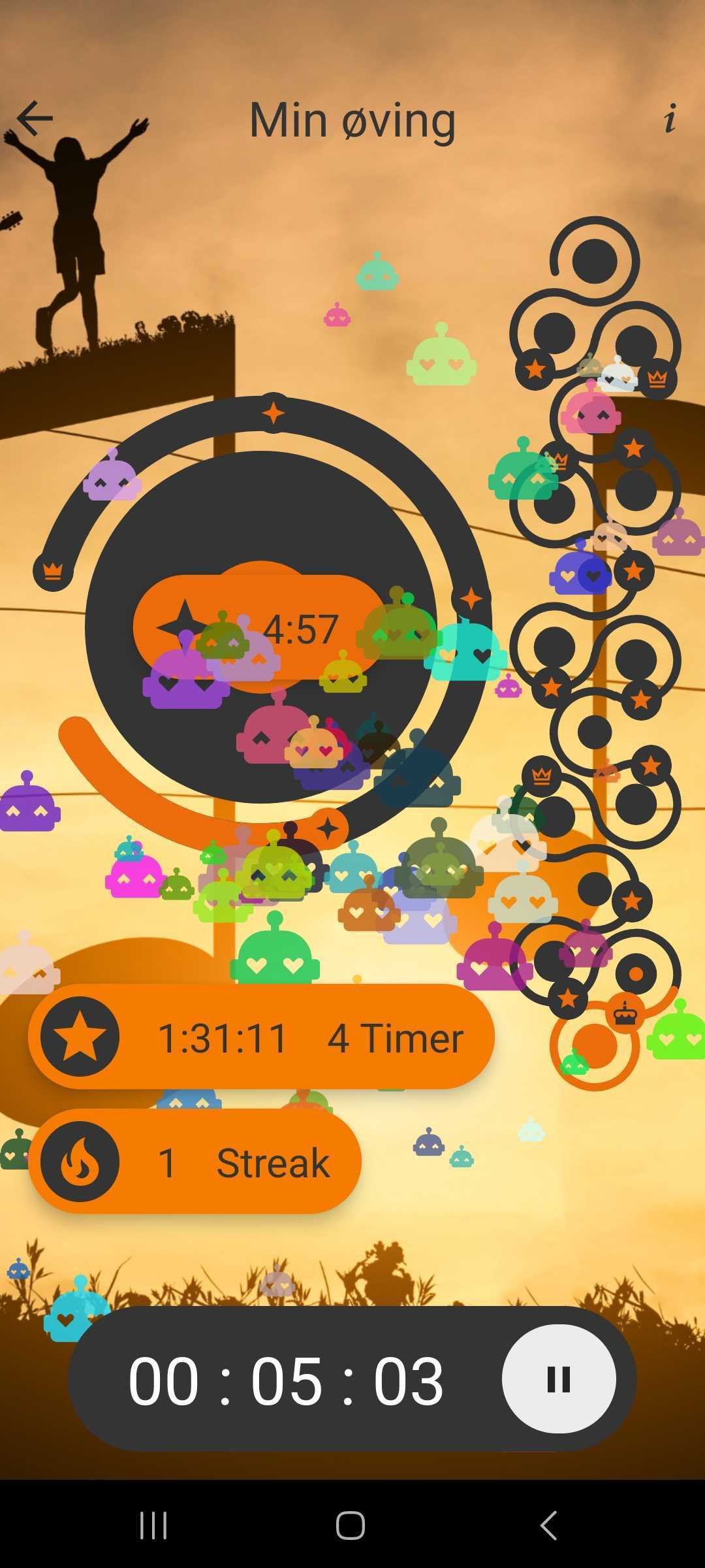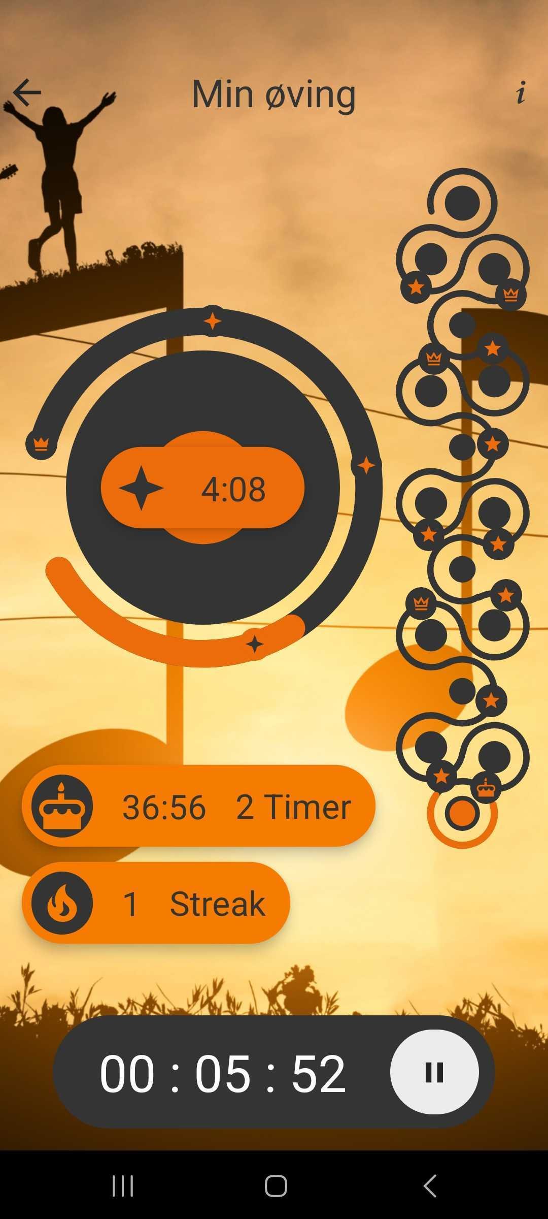 Start tidtakeren inne i Tutti-appen når du begynner å øve og se hvor lenge du kan holde på.
