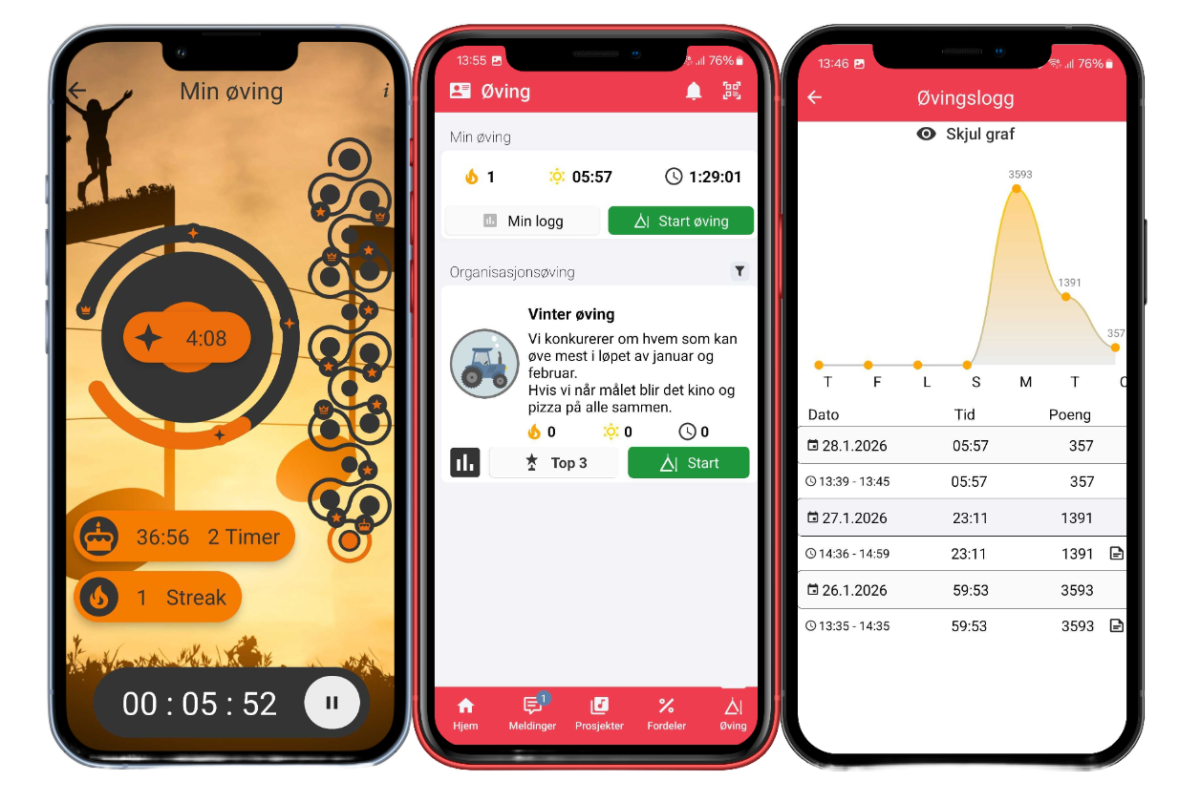 Du får full oversikt over hvor ofte og hvor lenge du øver rette i lommen.